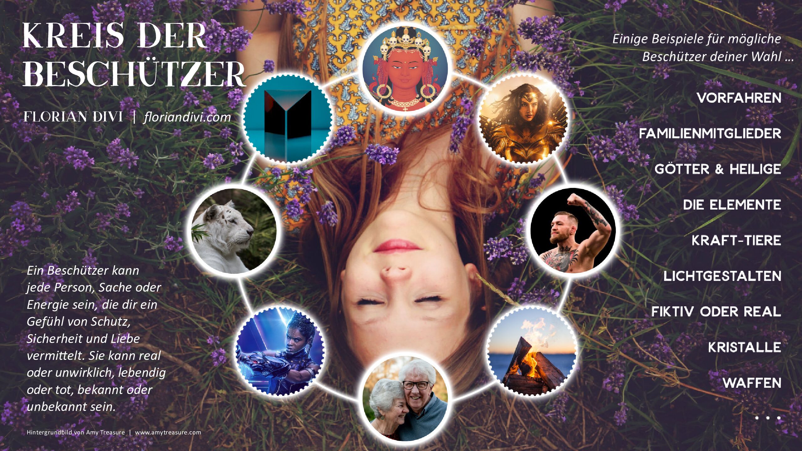 Diese vorgestellten Beschützer können lebend oder verstorben, berühmt oder unbekannt, real oder frei erfunden sein. Deiner Vorstellung sind absolut keine Grenzen gesetzt – Superhelden oder Götter, Krafttiere, mystische Krieger oder religiöse Symbole, Ahnen, Familienmitglieder oder Haustiere, Waffen, Pflanzen, Kristalle oder Sterne – alles funktioniert, solange es für dich stimmig ist. Sei kreativ und tob dich aus. 🙂